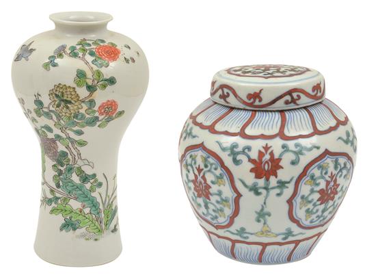A FAMILLE ROSE VASE AND A LIDDED JAR