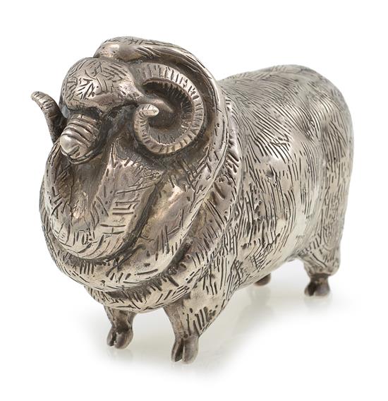 A STERLING SILVER RAM FIGURINE