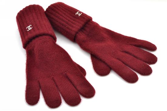 Styled in burgundy cashmere with silver metal Chanel motif.