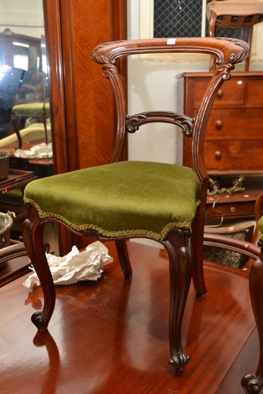 each with a leaf capped crest rail, above a horizontal splat, cabriole legs