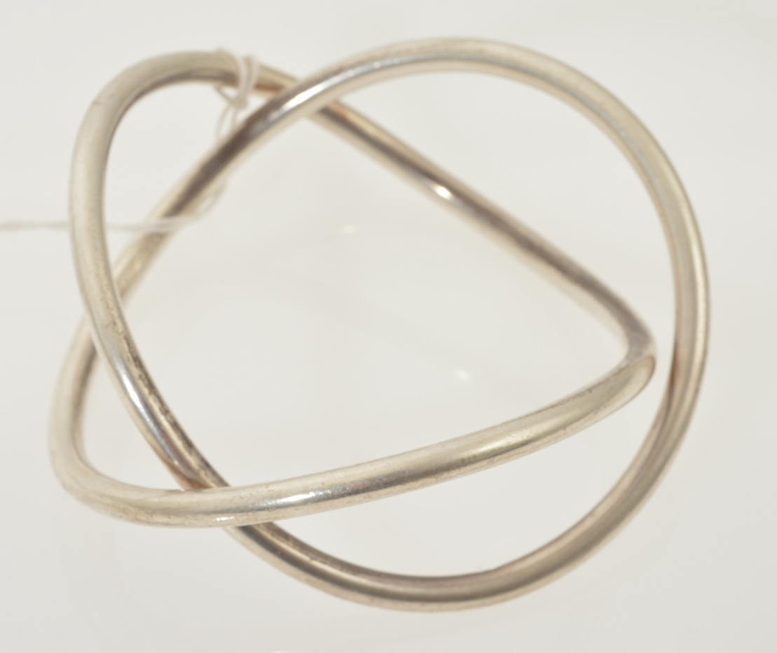 Of crossover design, styled in sterling silver, 70mm diameter.