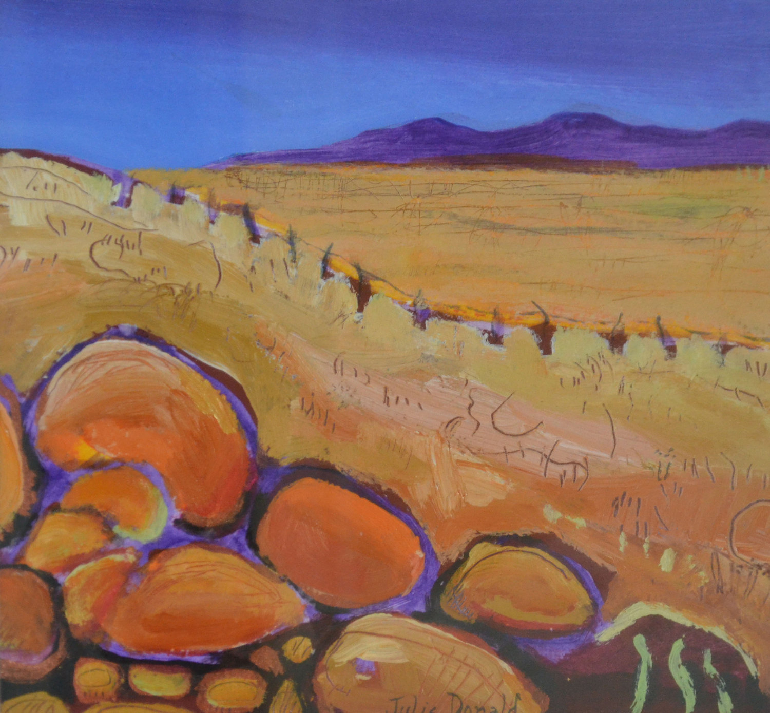 PAIR OF WORKS BY JULIE DONALD, LANDSCAPES, OIL ON CARD, 19 X 21CM