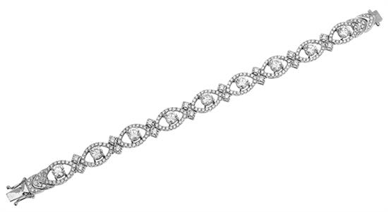 Centrally set with nine round brilliant cut diamonds totalling 4.64cts, all with GIA laser inscriptions, colour D, clarity VVS1, with further diamond detail to links and spacers totalling 3.00cts, mounted in 18ct white gold, total length 165mm.