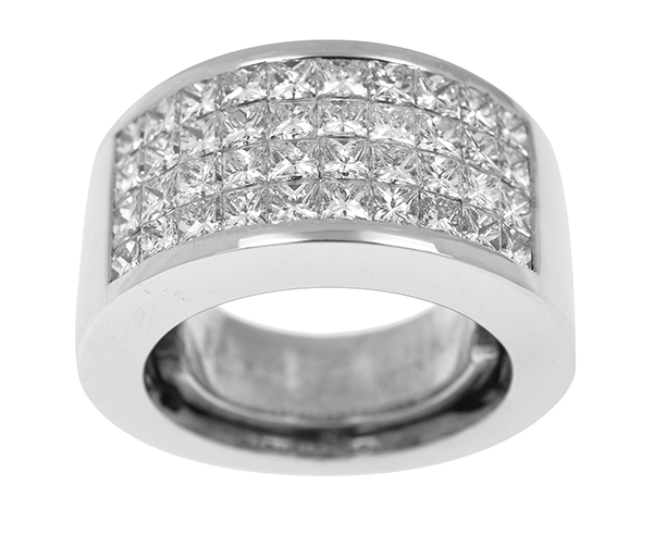 Featuring forty invisibly set princess cut diamonds totalling 4.00cts, mounted in 18ct white gold, ring size I.
