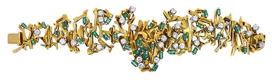 AN EMERALD AND DIAMOND COCKTAIL BRACELET WRISTWATCH