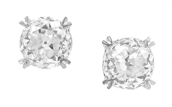 Each set with an old style vintage cut diamond of 0.93cts, mounted in 18ct white gold.