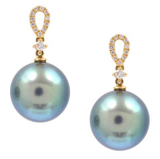 A PAIR OF TAHITIAN PEARL AND DIAMOND EARRINGS