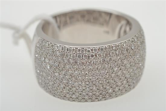 Pave set with round brilliant cut diamonds totalling 1.76cts, mounted in 18ct white gold, ring size N-O.