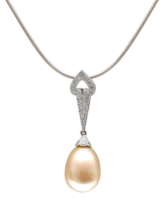 A GOLDEN SOUTH SEA PEARL AND DIAMOND PENDANT