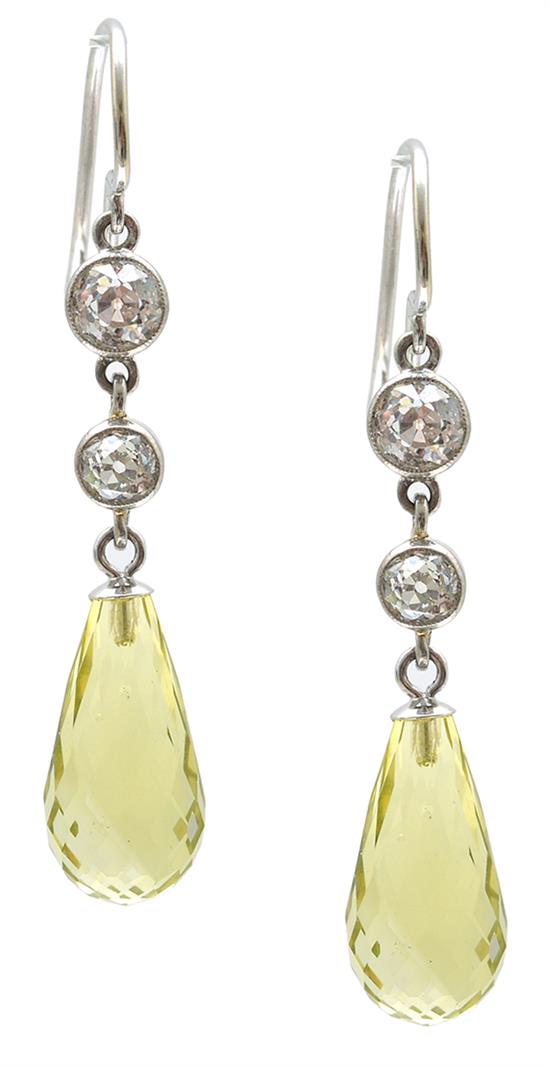 Each articulated drop set with two old European cut diamonds above a faceted lemon quartz, mounted in 18ct white gold.