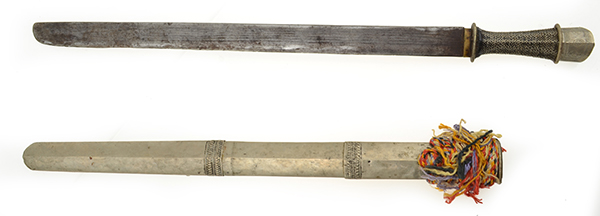 multiple blood grooves, silver pommel and grip wound with plaited silver wire, silver sheath, 74.5 cm total length