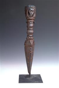 AN IATMUL MWAI MASK, MIDDLE SEPIK RIVER, 20th century, elongated nose ending with a small birds head, minor wood damage on side as v...