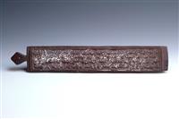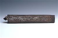 THREE WOODEN PRINTING BLOCKS, two Tibetan, the other a Nepalese prayer flag printing block, the largest 33cm x 5cm