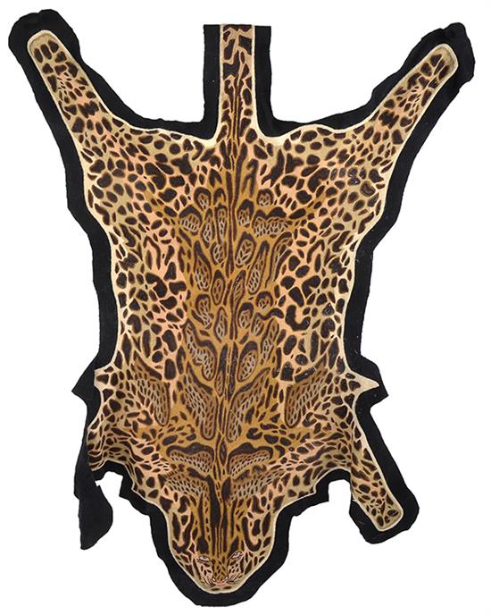 A KASHMIRI EMBROIDERED LONG STITCH LEOPARD, on black felt, 232 x 144.7cm