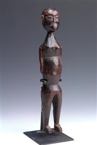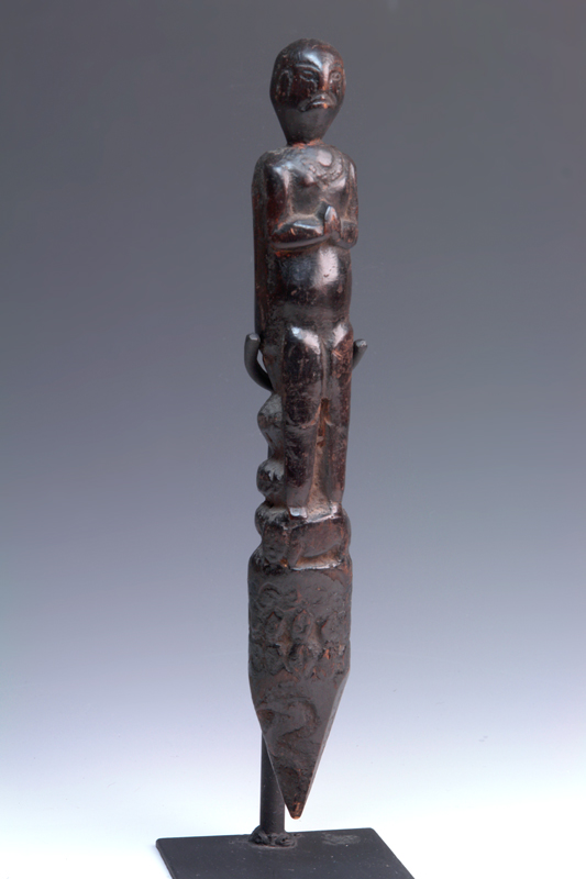 TWO NEPALESE TEMAN TRIBE WOOD CARVED FIGURES, the largest 30cm high