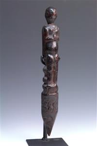 AN IATMUL MWAI MASK, MIDDLE SEPIK RIVER, 20th century, elongated nose ending with a small birds head, minor wood damage on side as v...
