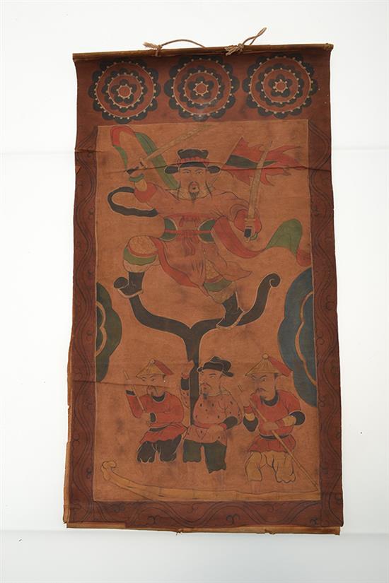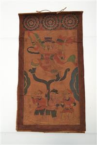 TWO 19TH CENTURY YAO TRIBE CEREMONIAL PAINTINGS, the largest 106.5cm x 45.5cm