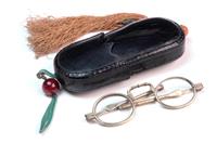 TWO PAIRS OF TIBETAN SPECTACLES, both with articulated arms, the largest case 15cm long