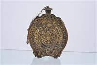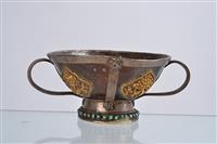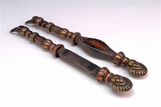 A COLLECTION OF ASSORTED ITEMS, including a medicine spoon, holy water flask, Tibetan drinking cup, medicine staff with file and small Bhairava mask, the spoon 34cm long