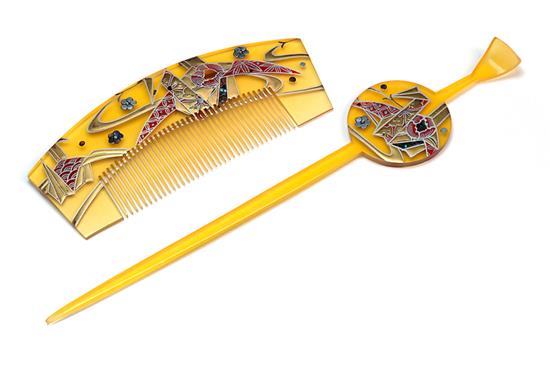 A JAPANESE GILT LACQUERED HAIRCOMB AND PIN,