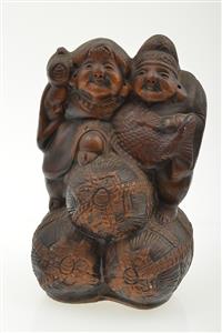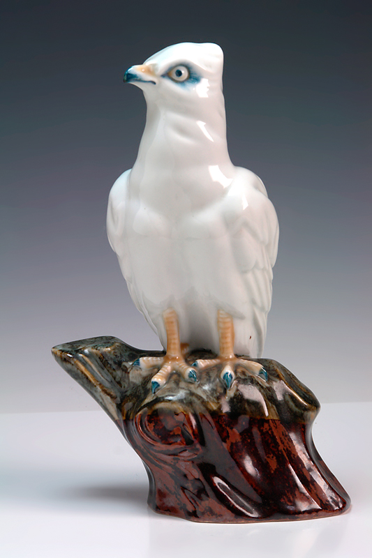 THREE PORCELAIN FIGURES, including eagle, Hirado porcelain sake pourer and figure of Daikoku The eagle, 27.5cm high
