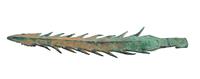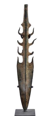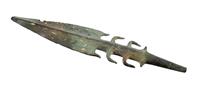 THREE EARLY BRONZE HARPOON TIPS, one circa 1500 BC The largest 38cm long