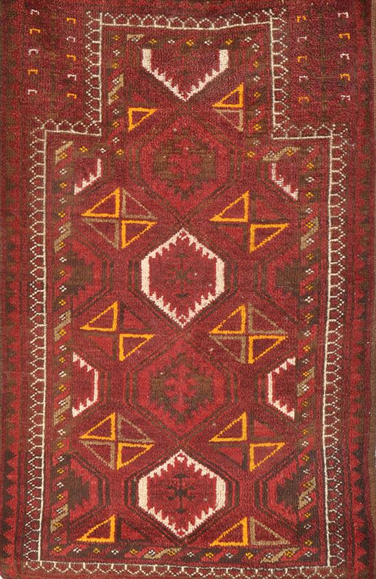AN ANATOLIAN RUG, red and brown tones 116 x 67cm, excluding tassels