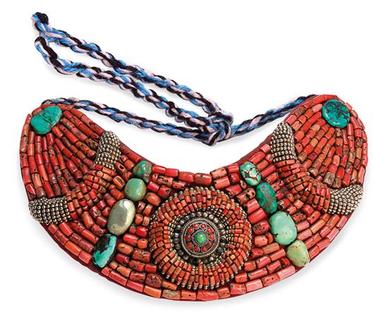 AN ELABORATE CORAL LADIES HEADPIECE ALONG WITH AN ASSOCIATED CORAL GORGET,
