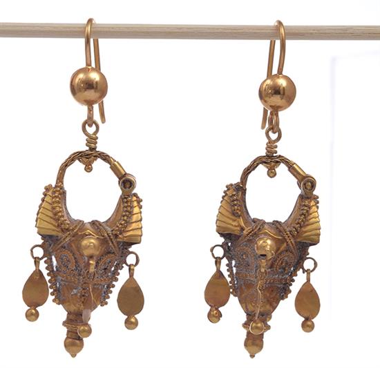 A PAIR OF TRIBAL GOLD EARRINGS, Bastar tribe, total length 5cm