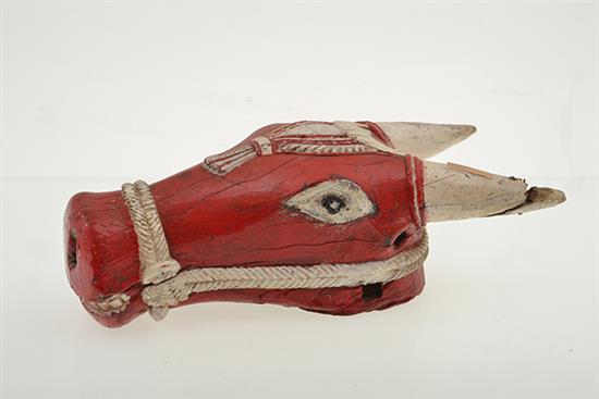 AN INDIAN POLYCHROME COWS HEAD ON STAND, 36cm high, including stand