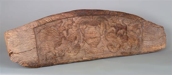 A 19TH CENTURY TEMPLE DOOR LINTEL, modelled with elephants, a fish and birds 124 x 48cm
