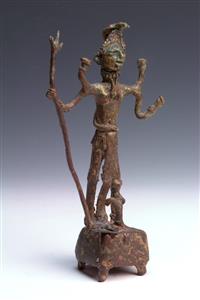 THREE NAGA TRIBE BRONZE FIGURES, including Kali figure and two Shivas The largest 20cm high