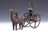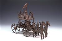 THREE BASTAR TRIBE BRONZE FIGURES, including a Kali figure, and two carriage groups The Kali figure, 16cm high
