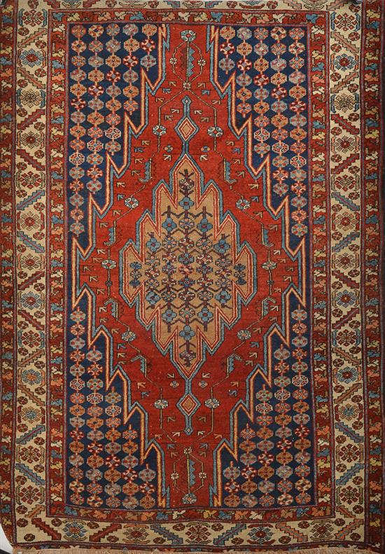 AN ANATOLIAN RUG, floral border, large central geometric motif 197 x 132cm, excluding tassels