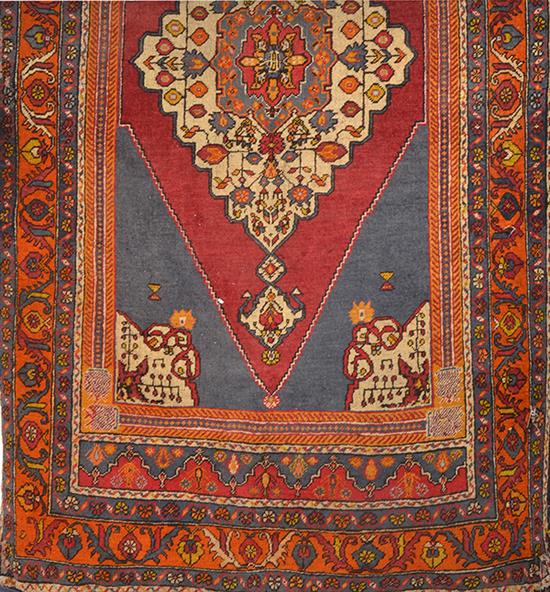 A LARGE ANATOLIAN RUG, orange, blue and red ground 284 x 160cm, excluding tassels