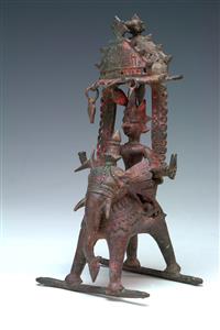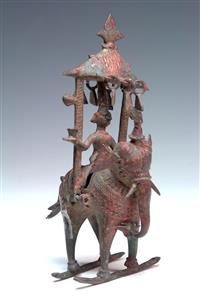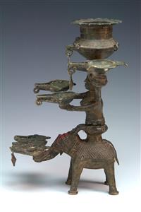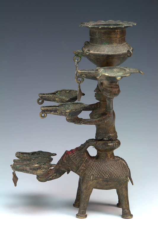 THREE BENGALI FIGURES, including Parvati, Lakshmi and elephant butterlamp, the latter 23cm high