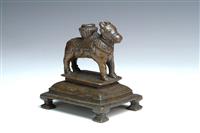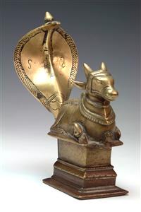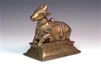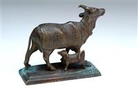 FOUR CAST METAL BOVINE FIGURES, including two nandi bull figures, brass cow and bull incense burner The incense burner 10cm high