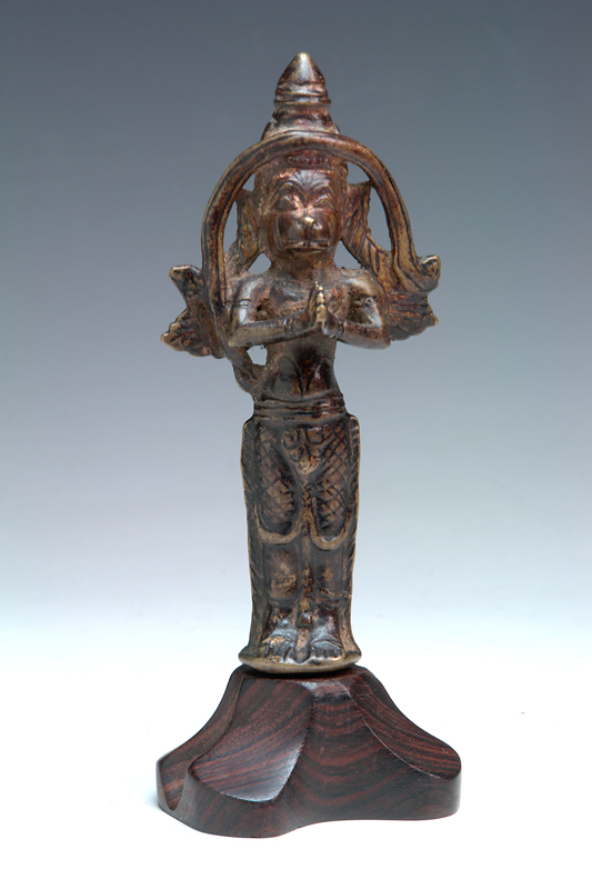 AN 18TH CENTURY BRONZE JANUS FIGURE, one side Garuda, the other Hanuman 12cm high, base not measured