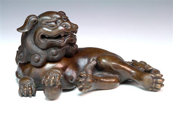 A BRONZE CENSER IN SHAPE OF A RECUMBANT LION, 20 x 11cm
