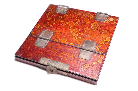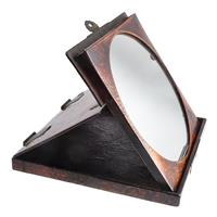 A LADIES VANITY MIRROR, decorated with painted court scene, 48 x 48cm