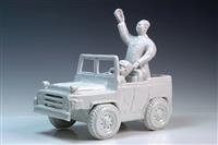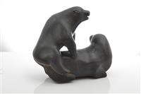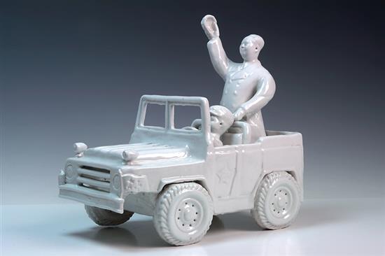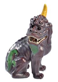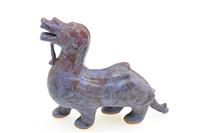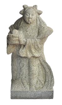 A COLLECTION OF FIVE FIGURES, including two purple dragons, granite immortal, stone seal group and Mao figure. The immortal, 53cm high, faults to some