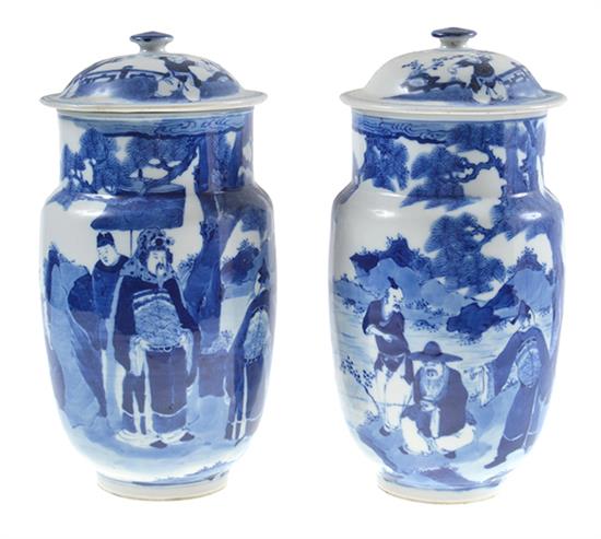 A PAIR OF CHINESE BLUE AND WHITE LIDDED JARS, late 19th/20th century 27cm high