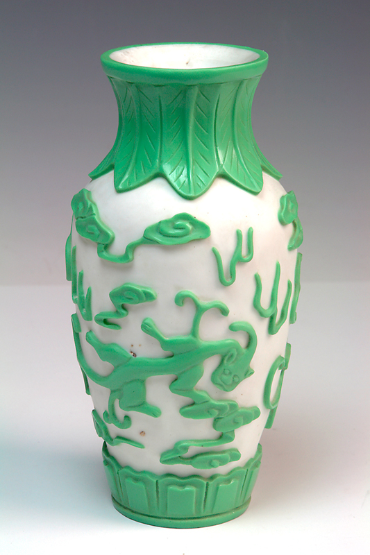 A WHITE & GREEN VASE, with applied phoenixes and clouds, 17.5cm high