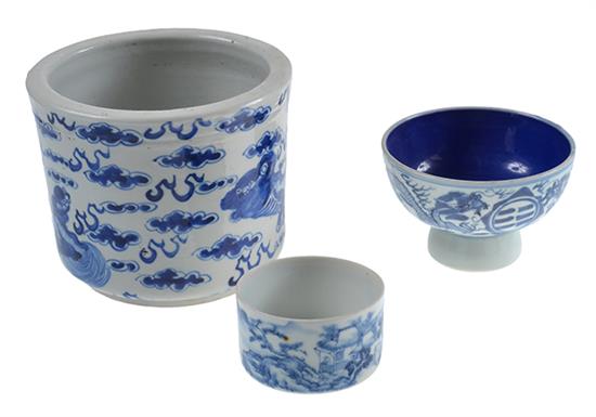 A GROUP OF FOUR CHINESE BLUE AND WHITE PORCELAIN ITEMS,