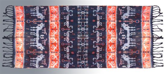 A COLLECTION OF TEXTILES, including Toraja tribe Ikat, Lombok Island weaving, Nias sleeping blanket, Riau islands beaded and embroidered sheet and Sumba island back strip loom woven cloth. The ikat 342 x 66cm
