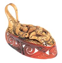 TWO BATAK EAR PENDANTS, made from hornbill beak, deeply carved totem figure. The largest 7.5cm long