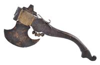 TWO AXES, including a Sumatran Minangkabau tribe monkey skin axe, 42cm long