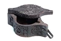 A BATAK SCALE BOX AND A JAVANESE OPIUM CONTAINER, the opium container 15cm wide