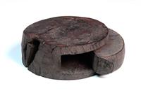 A HAWAIIAN POI BOWL, with three native butterfly repairs, inside one side a root knot, 13.5 x 13.5cm