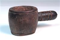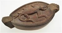 THREE BATAK MORTARS, including two figural mortars with lids. The largest 38 x 17.5 x 16.5cm